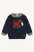 Myk og lett strikkegenser i bomull med gravemaskin og knapper i halsen