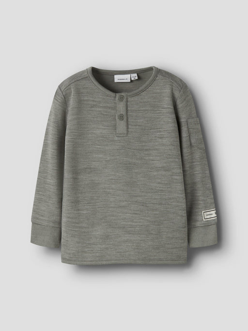 NameItMyk og behagelig genser fra NameIt i ull og viskose blanding for sensitiv hud. Stilige knappe detaljer i front